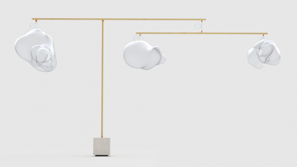 A natural light diffuser that provides an abstract window on the outside world. The Air tree concept is design to deliver filtered moisturised air around the room in a random and unpredictable manner.The air tree consists of a vaporizer covered by textile ‘clouds’. It is designed to ‘breathe’ in rhythm to the airflow outside. The movement of the ‘mobile’ relates to the weather outside and is intended to create a subliminal connection to nature which surrounds us.