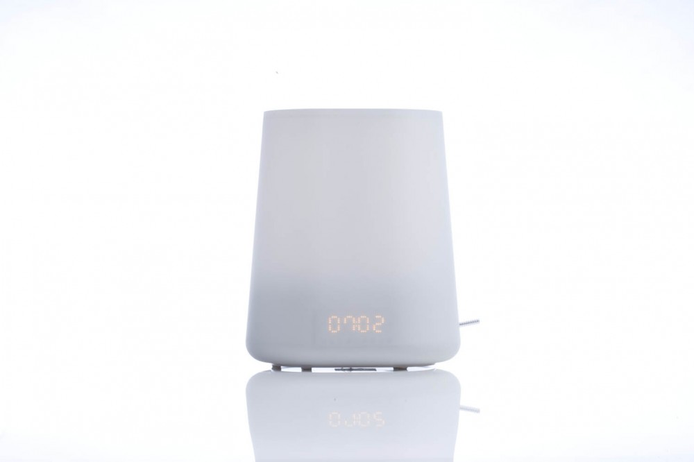 Combining a reading lamp with an alarm clock, the new Wake-up Light offers a more pleasant way to wake up by gradually illuminating as it turns on to simulate a sunrise and follow the natural rhythm of the body. The Wake-up Light concept was initially presented at the 2006 Simplicity Event where a number of ideas that envisioned Philips’ Design’s brand promise of Sense and Simplicity were shown. With reference to an iconic lampshade in terms of shape and materials used (glass, ceramics and metals), the Wake-up Light was designed to be a desirable interior object rather than a technology device. Its flush, modern shape and clean neutral design subtly hide the advanced technology. The display panel is inside the product rather than on the outside as on a traditional alarm clock, making the product less obtrusive. Housing the display icons in this way, the Light offers a look and feel of utter simplicity, eliminates a sense of clutter, and integrates seamlessly into any bedroom environment. The on and off button, a long, metal switch that protrudes from the Light, has been designed to be very visual and easily accessible. It allows the user to see the status of the alarm from across the room. It is also used to turn the lamp on and off.