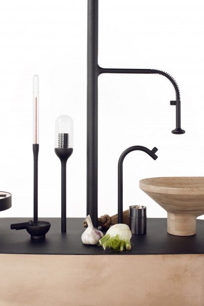 The bio-digester kitchen island is the central hub in the Microbial Home system. It consists of a methane digester which converts bathroom waste solids and vegetable trimmings into methane gas that is used to power a series of functions in the home. The bio-digester hub is designed as a repositionable kitchen island, including a chopping surface with vegetable waste grinder, a gas cooking range, a glass tank that shows energy reserves and glass elements showing pressure, volume and readiness of compost sludge. Materials used in the design are copper, cast iron, glass and bamboo. ‘Bio-gas’ is produced by developing a culture of suitable bacteria living on organic waste material from the home. The gas the bacteria generate is collected and burnt. This arrangement is called a methane digester and it has been used in various configurations for centuries.